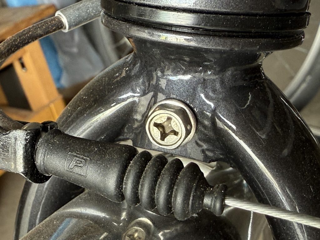 前輪Vブレーキのネジを外す