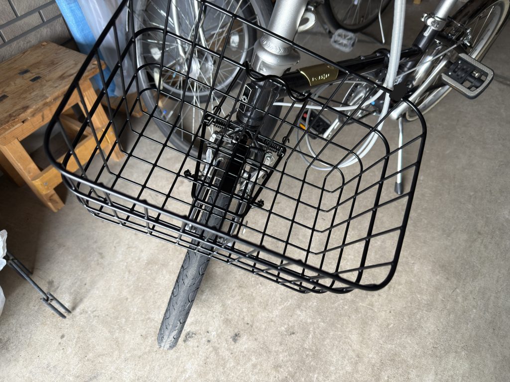 なので純正を選択してみる。純正はカゴを取り付ける場所がハンドルではなくタイヤの上。比較的安定すると思う。